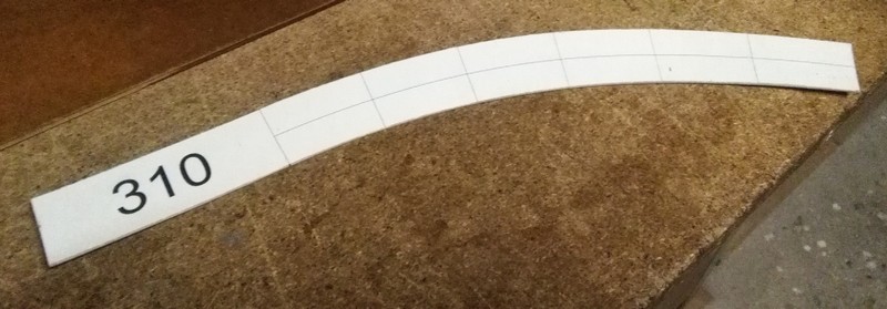 Ještě pro úplnost obrázek šablony. Šablona slouží i pro výrobu korkového podloží a pak mám ještě širší na překreslení překližkových podkladů tratě.