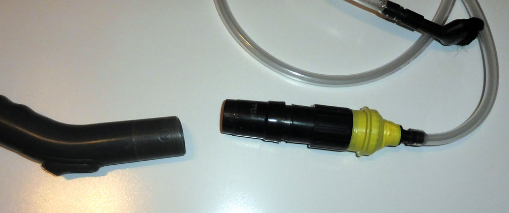 K "americké" koncovce mám připojenou asi tři metry dlouhou silikonovou hadici, na jejímž konci pak nasazuji koncovky (rovné, ohnuté, krátké, delší) zpravidla s kartáčkem.