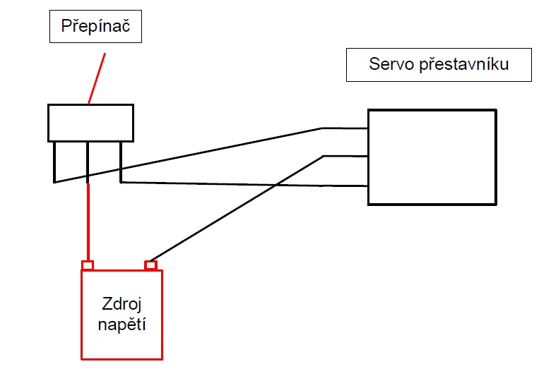Já používám tento spůsob. Mám tím vyřešeno nastavení přestavníků i signalizaci na pultu. Dobré je, že u všech přestavníků je jeden společný vodič v celém kolejišti (nulový, na obr. černý) a druhým vodičem přivádím plus a nebo mínus.