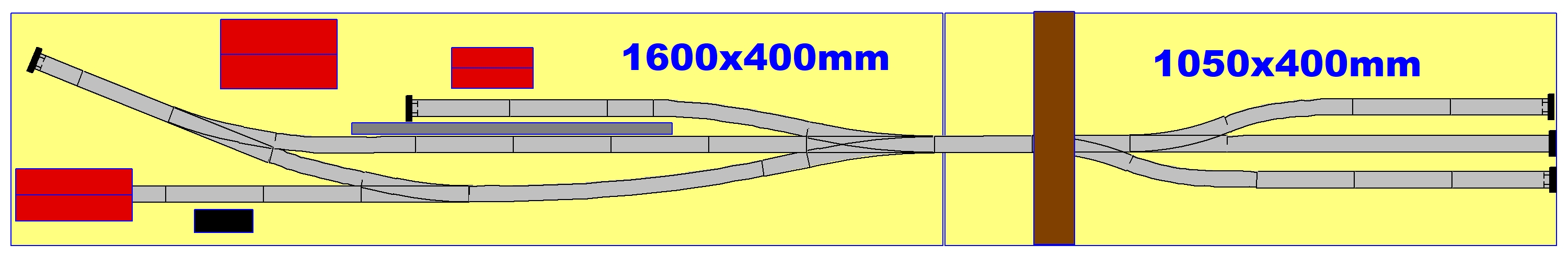 Honzo.Třícestnou veksli jsem zatím nikde použít nechtěl, ovšem zde bych asi udělal i výjimku. Z půdorysu to nevypadá ideálně, ale z tohoto pohedu na to nikdy koukat nebudu. Boužel ten rozměr je pro Hánulu extrémě malý. Jen pro info. Pára 422 a 4 dvouosé vagony, měří cca 50 cm. S Hektorem T435 je to o 5 cm víc. Simulované nástupiště má délku 55cm.Třícestnou veksli bych viděl jako jeden z kompromisů. :wink: Jak jsem koukal na tvůj odkaz, tak spíš bych investoval do dvou vekslí a udělal to takto. Rozměry segmentů mají své opodstatnění. Stanice max.1600mmx400mm se mi vejde do úložného prostoru pohovky a SN 1050x400mm na jeden regál vestavěné skříně :D :D :D