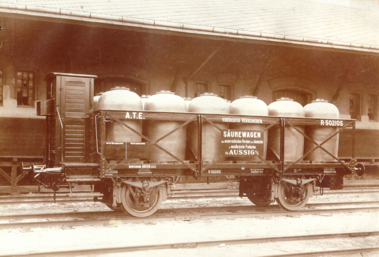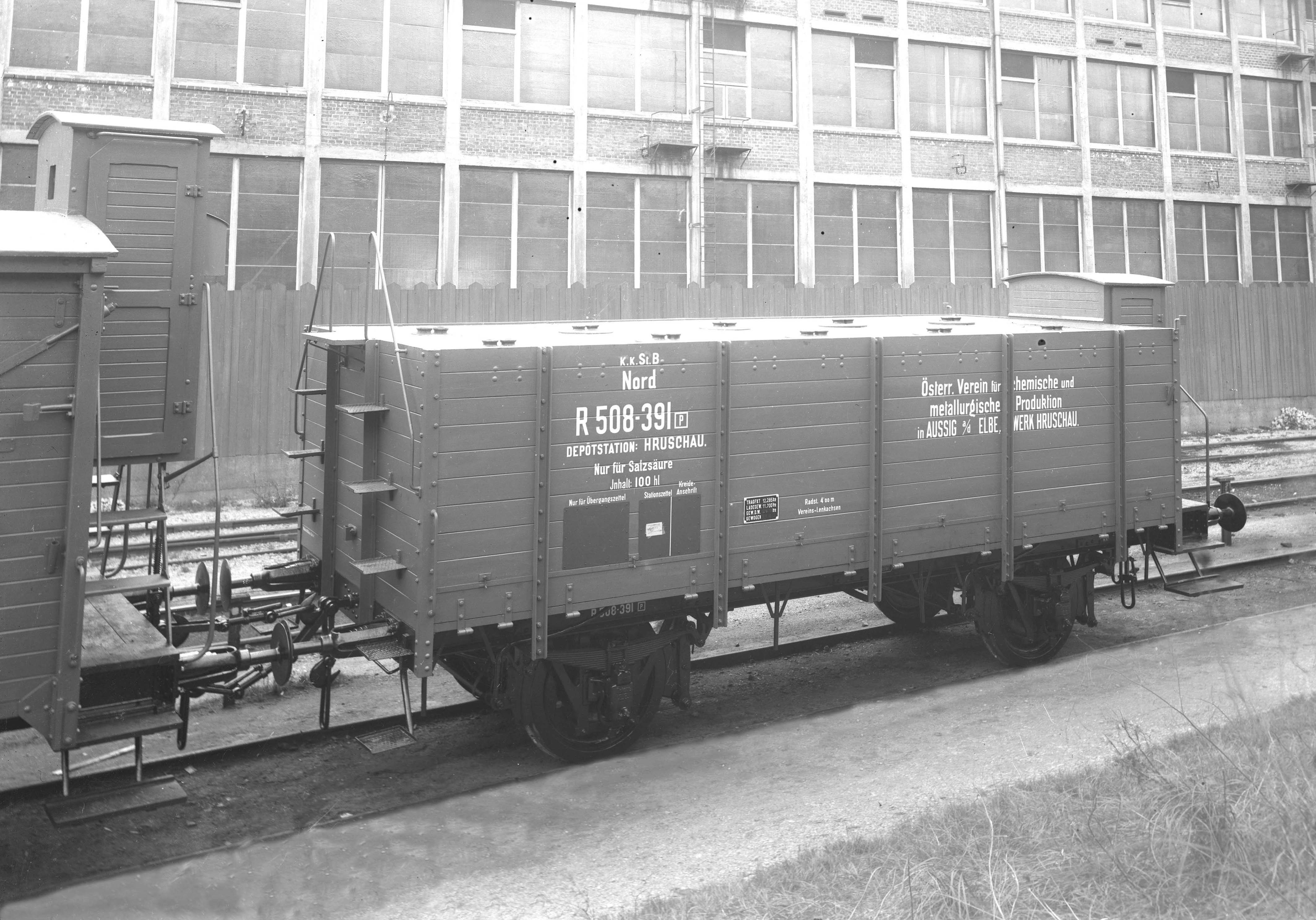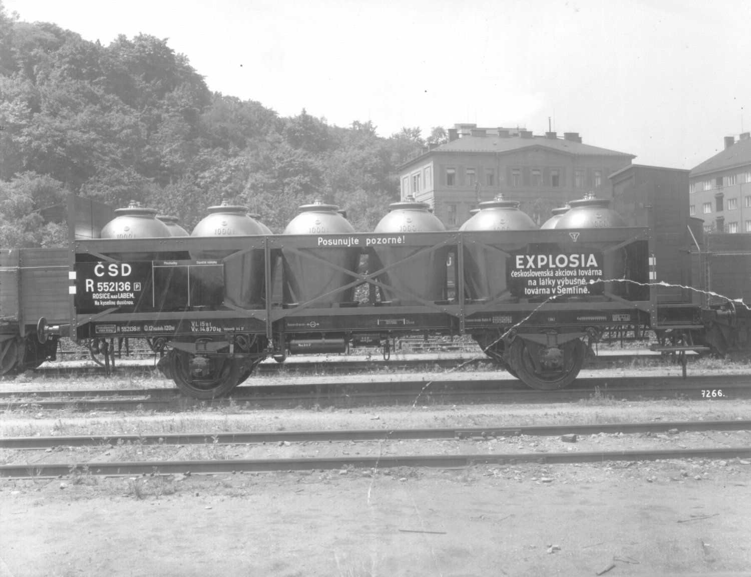 Jsou to negativy Kopřivnice č. 1372 - 173, vůz se 3 nápravami, nádobový, na kyslinu solnou (jak je na boku vozu psáno) ČSD R 551030.