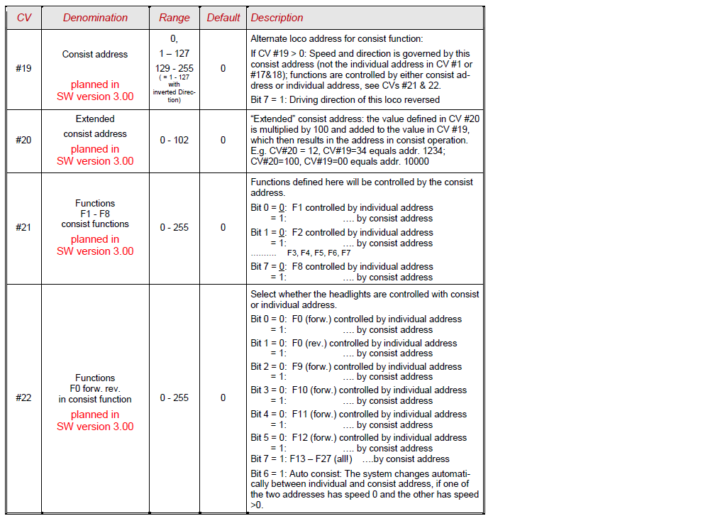 Pozeral som do vnútra EN manuálu a do popisov jednotlivých CV. Veľké množstvo CV má popis: "Planned in SW version 3.00", resp. "2.00". Takže to znamená, že EŠTE veľa vecí v tejto dobe nemajú implementovaných. Aktuálna verzia podľa EN mauálu je 2.0. Viď obrázky nižšie. Zdroj: ZIMO.at