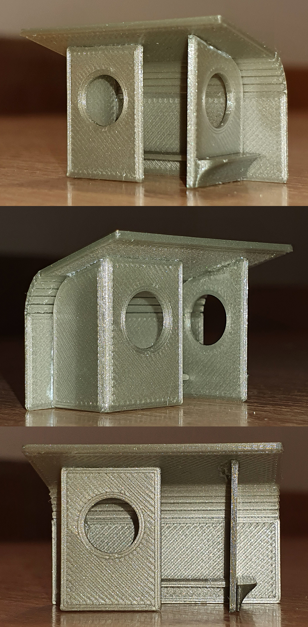 Z obrázků je vidět, že primitivní konstrukce nabízí možnost výroby modelu "from scratch" doslova v neděli odpoledne při kafi. :lol: V TT bych použil knihařskou lepenku 1 mm, v eNku 0,8 mm, lepil bych natupo. Přesto s tím mám jeden problém: Z obrázků, které jsem při internetové rešerši našel, mi není jasný materiál ani způsob položení střešní krytiny. Na střešním panelu aspoň na některých čekárnách evidentně nějaká krytina je - plech? Takže využívám této příležitosti a prosím někoho, kdo to má někam blízko, abyste skoukli a nafotili některý z těch přístřešků seshora a obrázky pověsili sem. Tady je seznam těch přístřešků, o kterých vím: