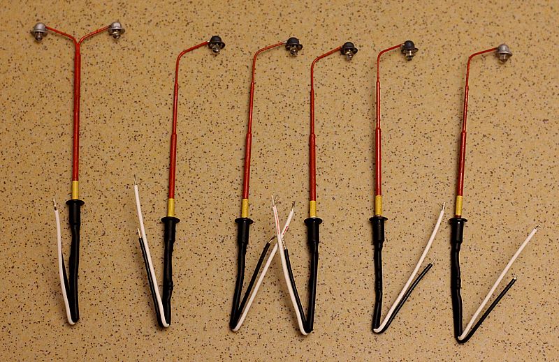 Nabídku jsem přijal a lampy jsem natřel všechny na červeno a opatřil je žlutým spodkem. Ještě kloboučky na šedo ...