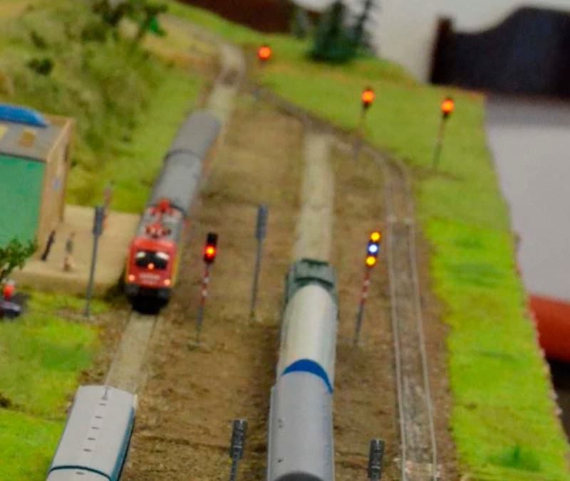nejen to, ale také informace co bude na následujícím odjezdovém nebo cestovém návěstidle. Na modelových kolejištích asi cestová většinou potřebovat nebudeme, ani na relativně velkém N kovém modulu by se mi za sebe nevešly dva vlaky delší než dva motoráky,