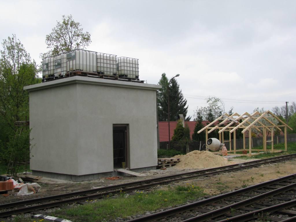 Jinak pod vodní nádrž bych dal parní kotel, jež vyvíjí páru pro parní čerpadlo (do rohu, kde je komín :D ), případně kamínka, aby mi to v zimě nezamrzlo - voda se čerpala hodinu denně? (Kniha Mám páru rád.) Záleží na odběru vody a výkonu čerpadla. Samozřejmě můžeme čerpat vodu i injektorem párou z lokomotivy...
