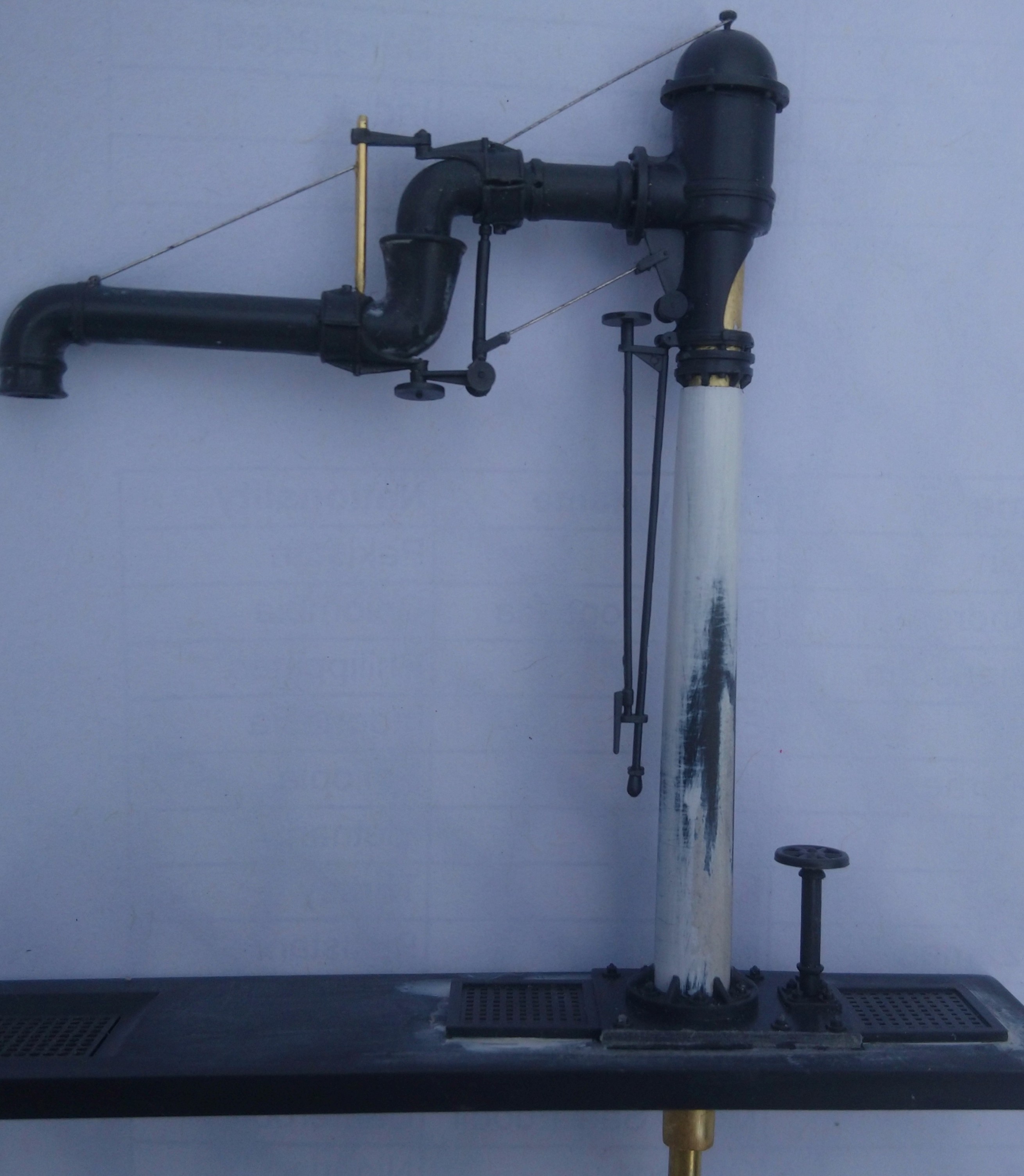 Omlouvám se za zpoždění vodárna se stále předělává. Nebyl jsem spokojen s barvou cihel. Zatím zde přidám pár fotek vodního jeřábů který je připraven na přítoky vody zatím něco málo odzkoušeno. Není to žádný gejzír ale vypadá to hezky. Dá se s jeřábem otáčet díky trubičkám. Dole pod kanálem by měl být odtok a servo které by mělo otáčet celý jeřáb. Ale s tím už nemám zkušenosti.
