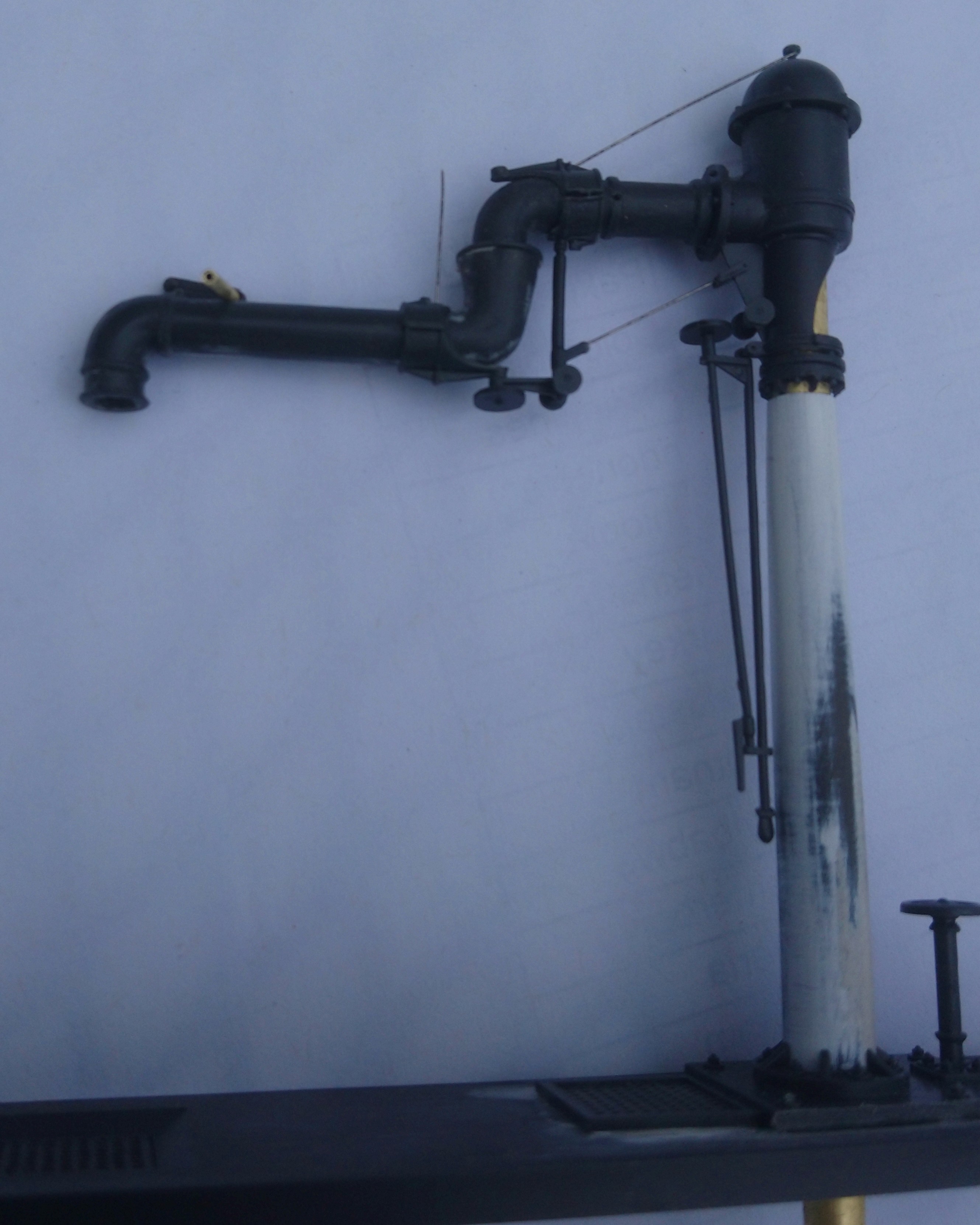Tak první jeřáb je připraven na nástřik základovou a pak barvou kloub se dá otáčet. Zatím jsem průtok vodou testoval jen pipetou. Ten průtok není nic moc ale teče a až to bude zapojeno na nějaký zásobník s vodou snad se to zlepší.. Když ne tak snaha byla
