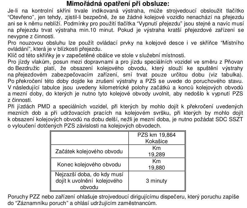 K tomu přejezdu v nz Kokašice (dneska už se vlastně neříká "nákladiště se zastávkou", ale "místo s kolejovým rozvětvením"... :roll:) jsou v PND3 z roku 2006 docela šílená ustanovení: