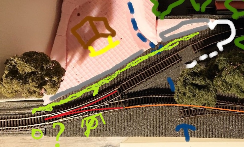 Ta pravá část, co zkusit na jejím vjezdu dát nějakou Ypsilonku výhybku a trochu narovnat oblouk k vlečce. S vlečkou bych naopak mírně klesal, nemusel by se řešit odvrat(pokud ho tam nechceš mít, a i pespektivně by to vypadalo lépe..... ?