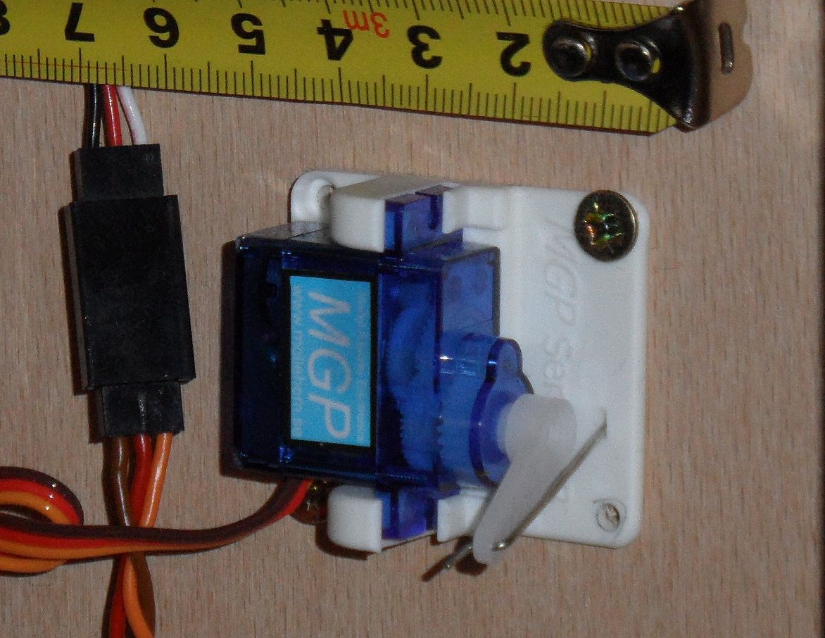 Tohle je pohled ze spodu na servo s trnem z obyčejné kancelářské sponky.