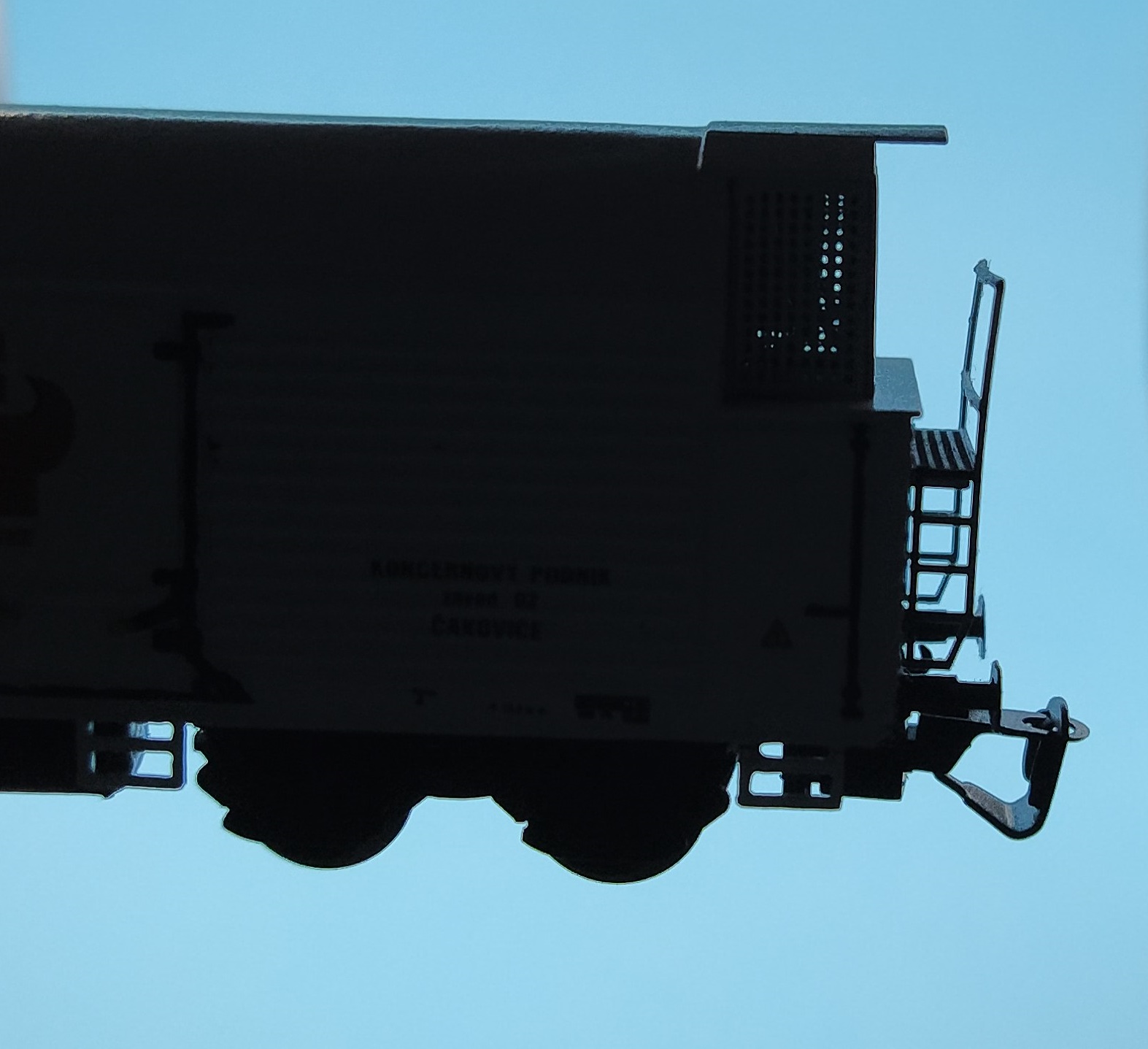 Podvozek je celý předělaný včetně podvozků s mosaznými ložisky z výroby, brzdové přestavovače, brzdové válce, vzduchové jímky a bedny jsou tištěné.