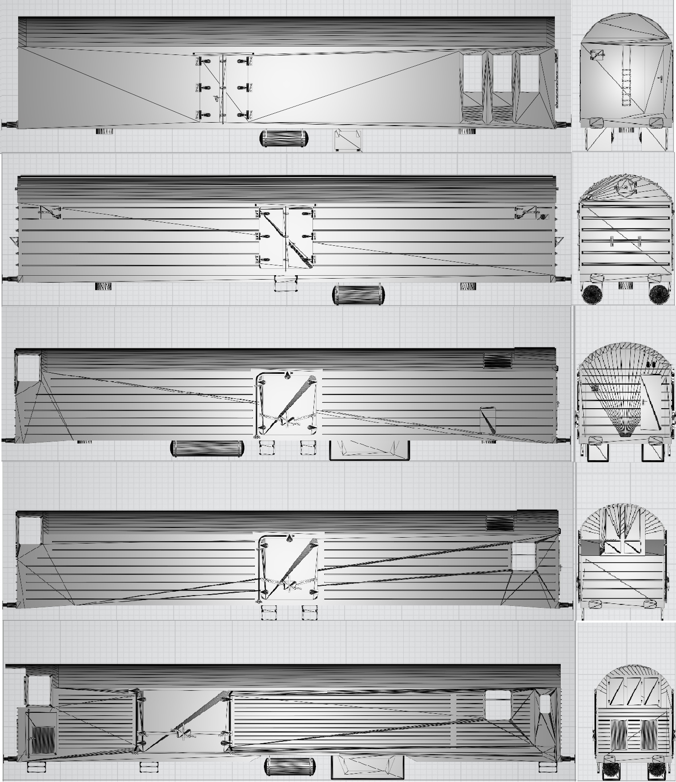 (dělá to dojem, že vozy jsou zobrazeny v různých měřítkách - viz různé šířky vozů na bokorysech vpravo)