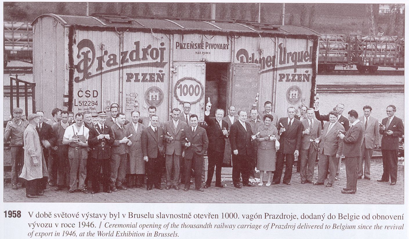 Bohužel na to už dnes nikdo nedá přesnou odpověď. V archivu Prazdroje jsem byl, ale k nápisům tam nic není. Zachovaly se jen některé dokumenty právní povahy, tzn. zařazovací smlouvy, různé dopisy, závěrové listy k vozům a podobné, občas jednání s ministerstvem. Určitě se nápisy na fotce z knihy vyskytly na více vozech, podle všeho se totiž přeci jen udržovala skupina vozů s lepšími reklamními nápisy. Kromě jednoduchého nápisu Prazdroj nade dveřmi na šedém nátěru, je toto právě asi jediný složitější nápis udržovaný po r. 1948. Zbytek nápisů z vozů po válce průběžně zmizel.