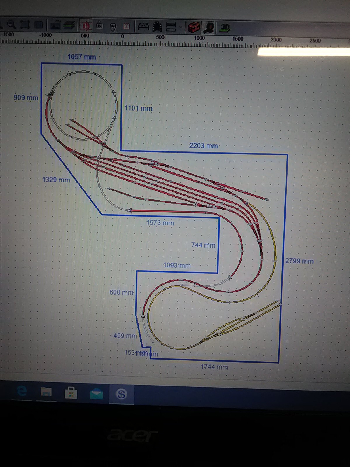 tak nejak sem to myslel...motoráček vyjede z tunelu přes hl.nadrazi az do koncove zlute.O další 1m trate navíc. Tu zluto dole ještě trochu narovnam ale jen tolik abych v rohu mel min 50cm*50cm pracovni otvor který bude za kulisou.