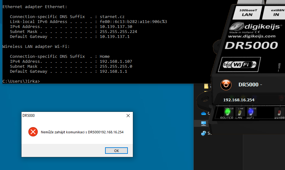 lze propojit i DR5000 přímo s PC, ale to by se musela nastavit krapet líp sít na PC.