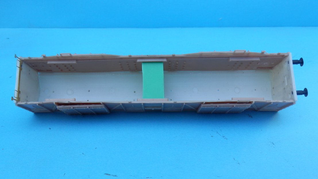 Na boky nad výstupky kde príde rám prilepím z oboch strán evergreen kúsky o hrúbke 0,5mm čo mi vystredí rám a súčasne ak je skriňa zlepená tuhšie tak nemusím rám ani vlepiť. Prípadne ho lepím disperzným lepidlom, nech si každý voz môže sám dovážiť. Po dokončení má približne 3,5g na 1cm čo je v norme (3-5g), ale niekto má rád vozy ťažšie