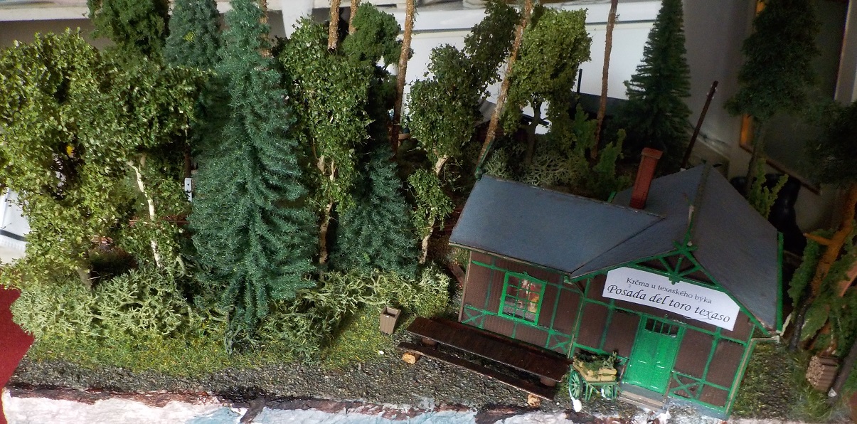 Hospůdka. Stavba od KB model, interirér Noch a FLM (krámská stěna od FLM je dost dobrá), sudy a lahváče Preiser (v sadě byly i socialistické sudy hliníkáče, ale ty padly na Bártův Mlýn).
