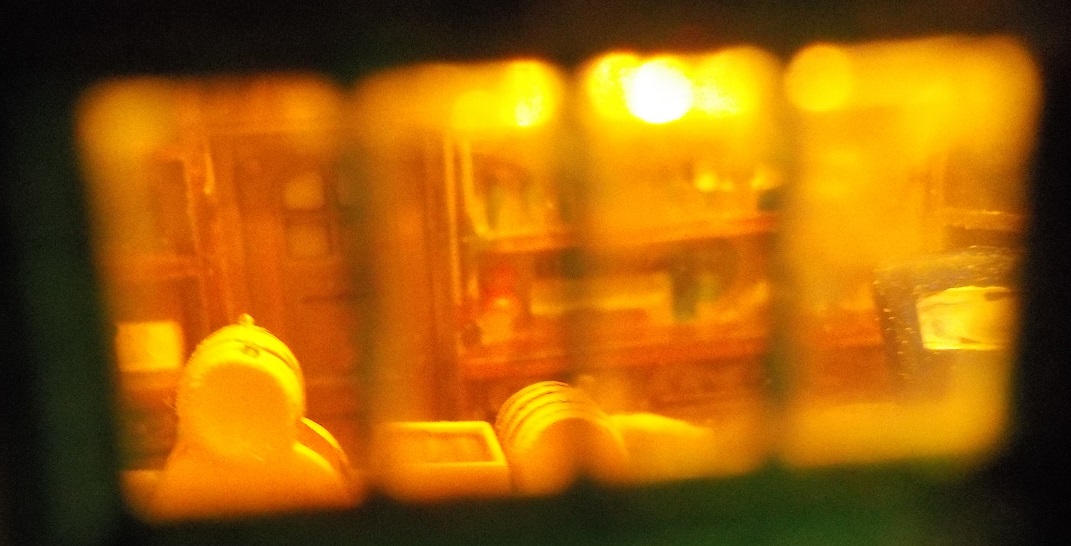 Okna moc průhledný sice nejsou, ale když se rozsvítí, je vnitřek patrný. Dostat ho dodatečně do hotové stavby byl dost opruz.