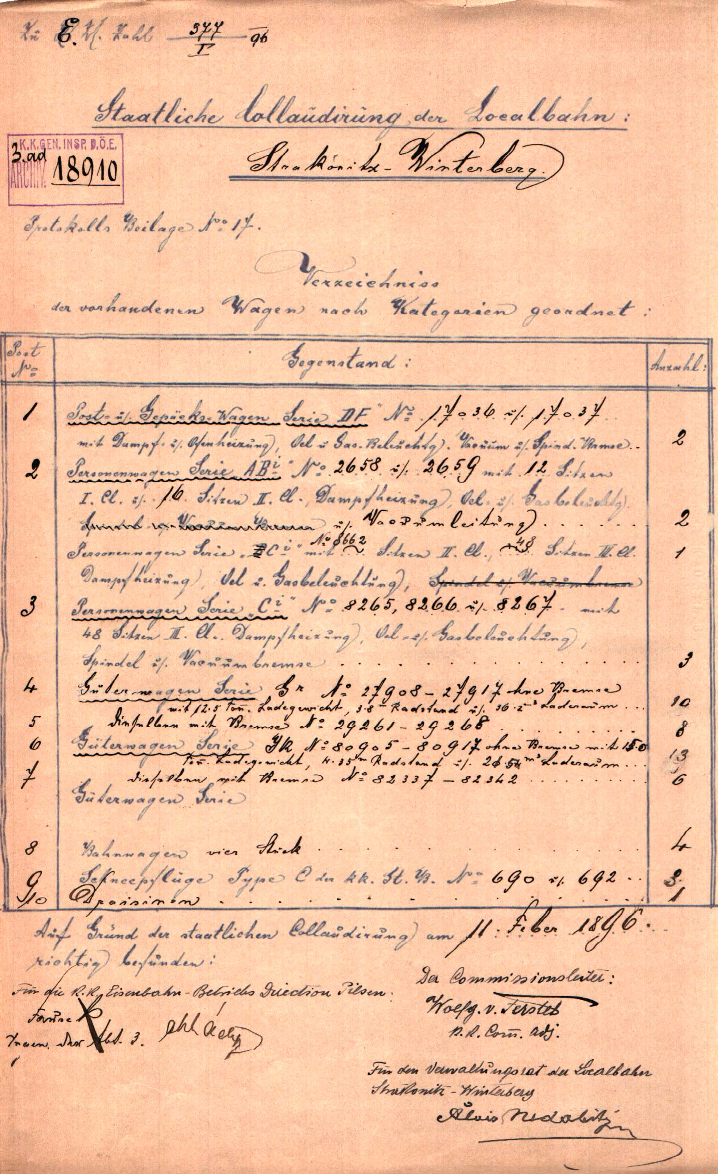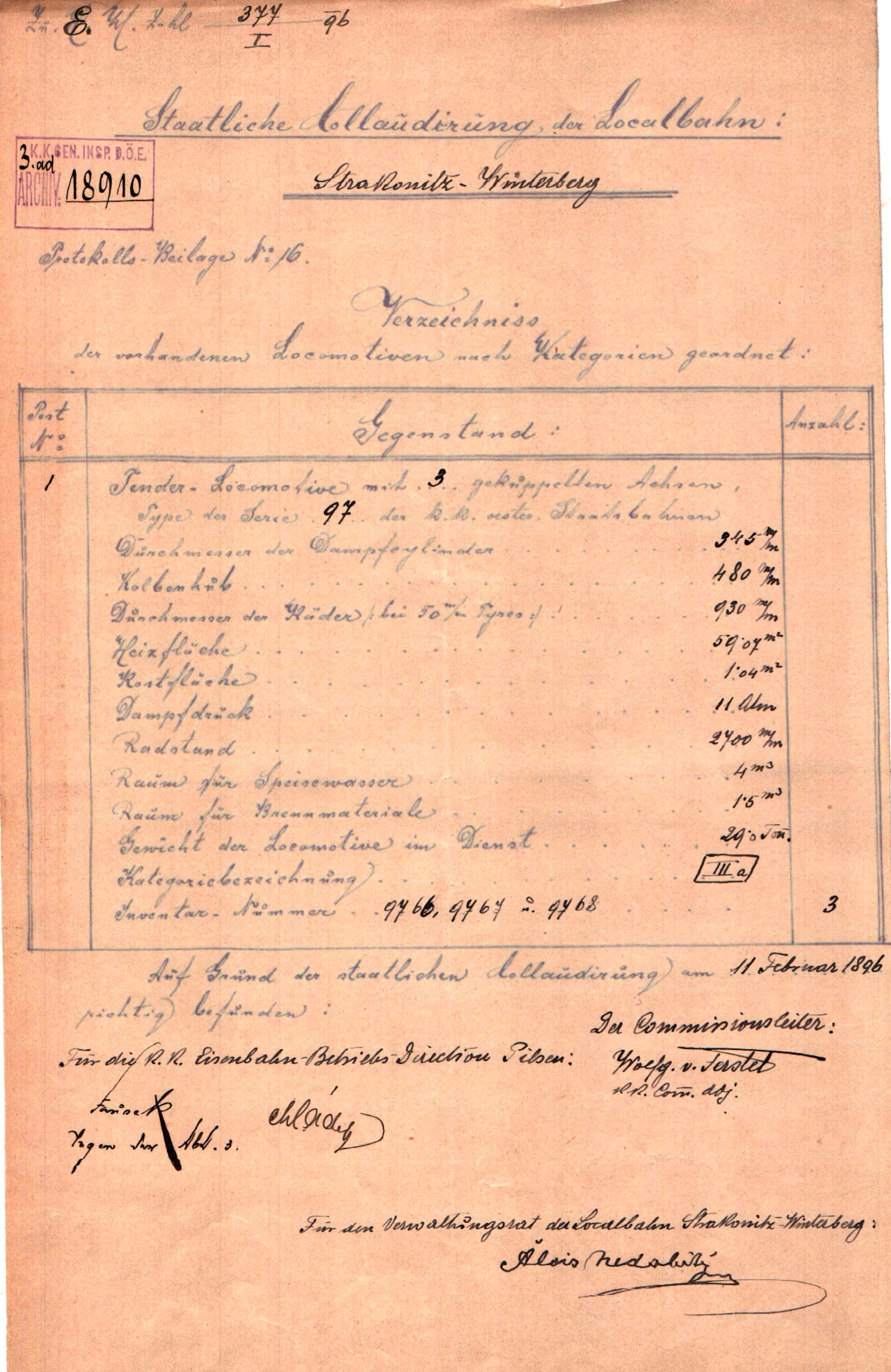 Změna lokomotiv na těchto čtyřech slezských lokálkách proběhla docela rychle neboť při státní kolaudaci ke dni 17. 7. 1901 již byly evidovány nové lokomotivy. Pro lokálku Lipová Lázně – Bernatice byly evidovány nově dvě čtyřspřežní lokomotivy s tendrem č. 7509 (později č. 73.209) a 7510 (později č. 73.210) a pro osobní vozbu dvě dvouspřežní tendrové lokomotivy č. 8807 a 8808. Tyto lokomotivy byly vystrojeny normovaným „parním kolenem“ kkStB a to i nákladní lokomotivy řady 75. Což u této řady lokomotiv s tendrem nebylo tak obvyklé. Lokálka Mikulovice – Zlaté Hory měla nově 2 tendrové tříspřežní lokomotivy č. 9789 a 9798. U dvou zbývajících lokálek Velká Kraš – Vidnava a Bernartice – Javorník, se situace ve strojním parku nezměnila. (viz výše)