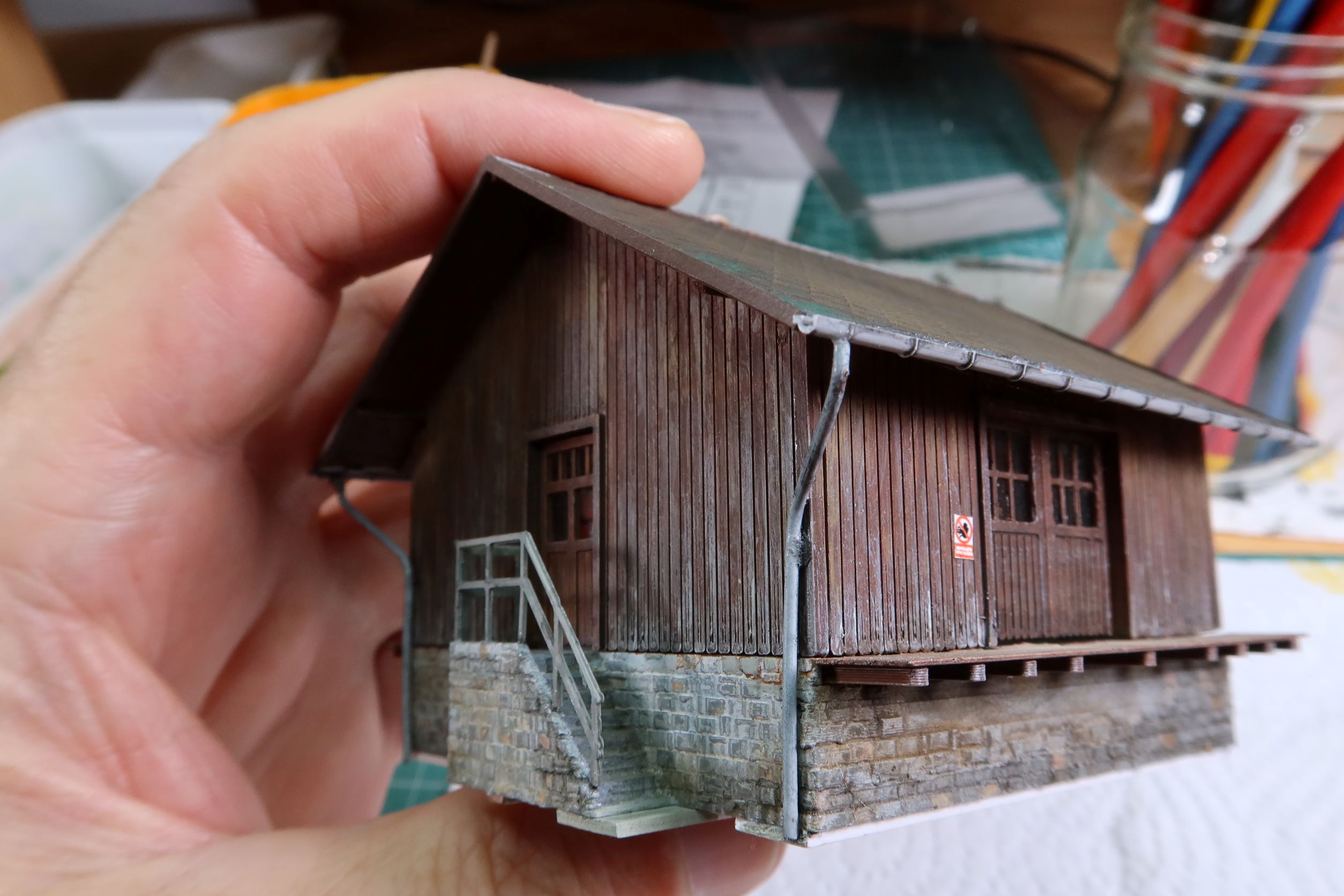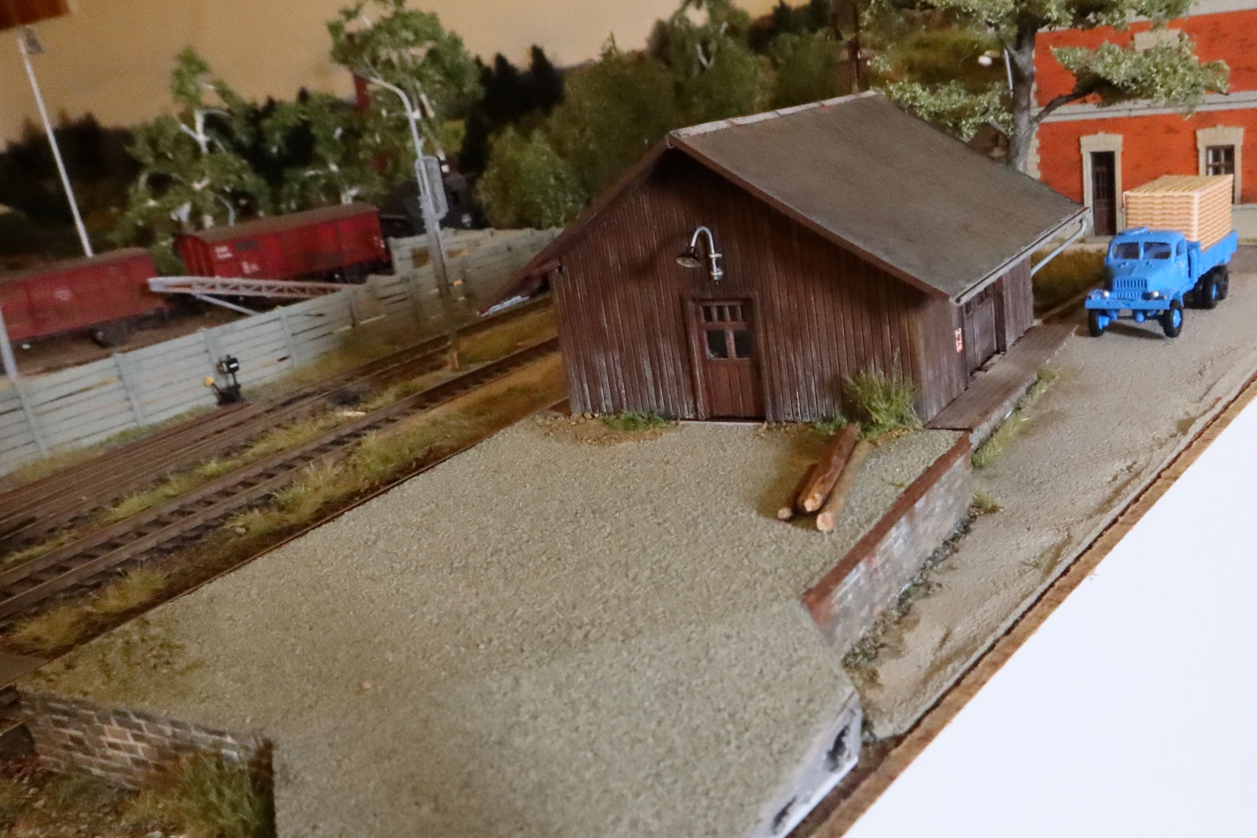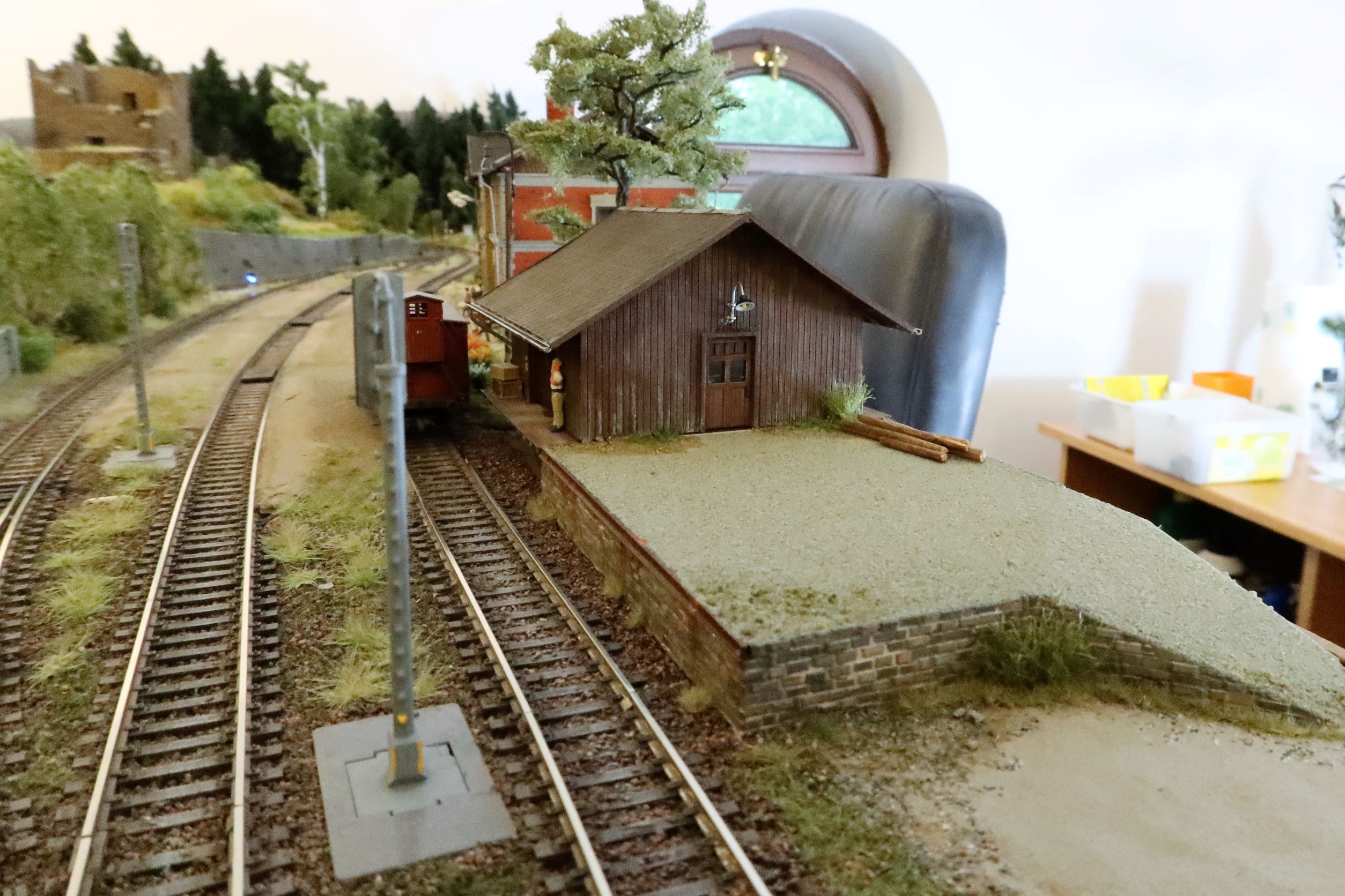 No a co kdybych skladiště vůbec dal pryč (stejně se mi nelíbí a není zatím připevněné) a 1. kolej prohlásil tímto za dopravní a hotovo? Návěstidla by tím pádem zůstala. Na místo skladiště s rampou by mohla přijít nějaká administrativní budova apod. - takových zděných objektů nejasného určení je vidět kolem stanic hafo. Anebo: manželka pořád kritizuje, že na kolejišti chybí správná hospoda. Že by?? Stejně je ve stanici vlečkový "areál" se skladem stavebního a jiného materiálu. Zde bych mohl ještě něco dovymyslet.