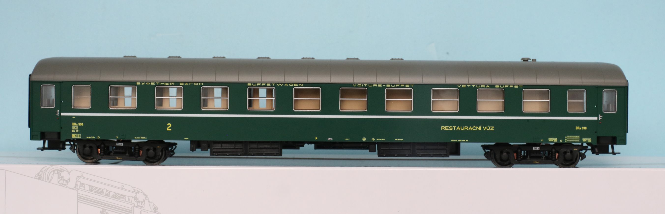 radeksindy píše:Ty si pořádně nečetl, co jsem napsal výše.Vozy BRa 550 až 589, dodané na přelomu let 1959 a 1960, a zřejmě i 5 vozů z roku 1961, měly na bočnici nápis "BUFETOVÝ VŮZ" ozdobným skloněným písmem, tentýž nápis jednoduším fontem nad okny ve 4 jazycích. Prohlédni si fototgrafie, které si sem vložil. Od roku 1961 (možná 1962, teď nejsem schopen rychle dohledat změnu), se ozdobné nápisy přestaly dávat, zrušil se nápis "BUFETOVÝ VŮZ", stejně tak se přestal používat nápis "JÍDELNÍ VŮZ"" a oboje bylo nahrazeno nápisem "RESTAURAČNÍ VŮZ". Vozy BRa z roku 1962 už to tak mají z výroby , hlavní nápis i nápisy nad okny jsou restaurační (proto je model blbě). Starším vozům byl nápis na bočnici v dílnách opraven, ale malé nápisy nad okny odkazující na původní bufetový vůz po určitou dobu zůstaly. To třeba reprezentuje vůz na barevné fotografii.