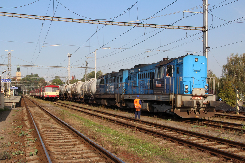 Zásuvka je umístěná vpravo od přechodového můstku takže kabel kříží zespoda šroubovku spojených lokomotiv. Kabel nikde nevisí, v rámu je na něj schránka. Je to dost choulostivé zařízení ve spojení se zásuvkami a je potřeba slušného zacházení. Pro ilustraci přikládám fotku z Ostravy částečně rozpojené dvojice 742 447+742394 která jela do depa. Je vidět změť hadic , kabel a šroubovka. Do modelového provozu by to moc nebylo. Druhá fotka je dvojice 742 093+742 430 s cisternami do teplárny v Bruntále. Lokomotivy už mají zásuvky i na dlouhých čelech. Na konci vlaku ještě byla postrková 742 ale jen do Opavy západ.Čouda píše:Tak jsem videl spravne kabel na dvojclen. V mobilu to mam male. Ale prekvapilo me umisteni zasuvek. Asi by to bylo lepsi, nez to tam mordovat mezi naraznikama. Na zluze hadice vlevo jsme cekali 40 let, a i tak to ma minimum stroju. No a nedejboze, kdyz to nekdo spoji dlouhyma k sobe. Na malym stanovisti je zima. To pak lezu z masiny jako revmaticky starec. O rozervanych rukavech o zaluzie ani nemluvim.