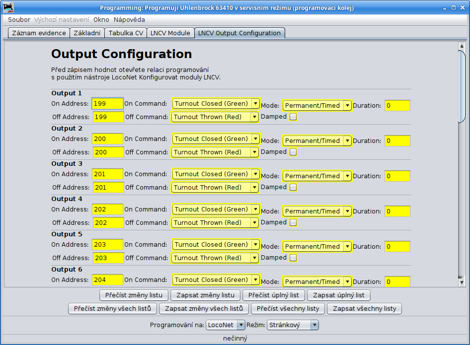 Pro programování dekodéru je potřeba mít centrálu, která umí programovat LNCV a dobře si přečíst manuál.