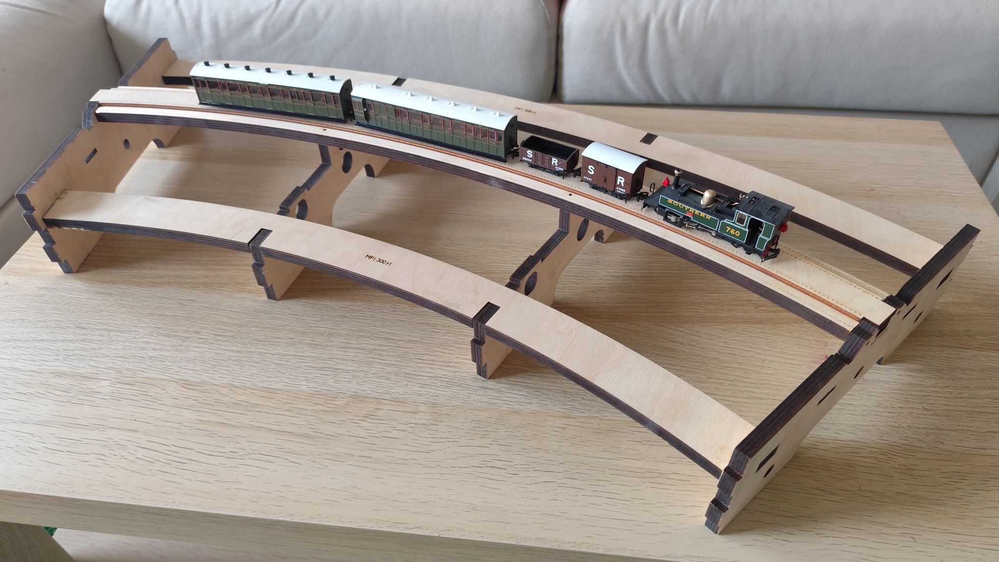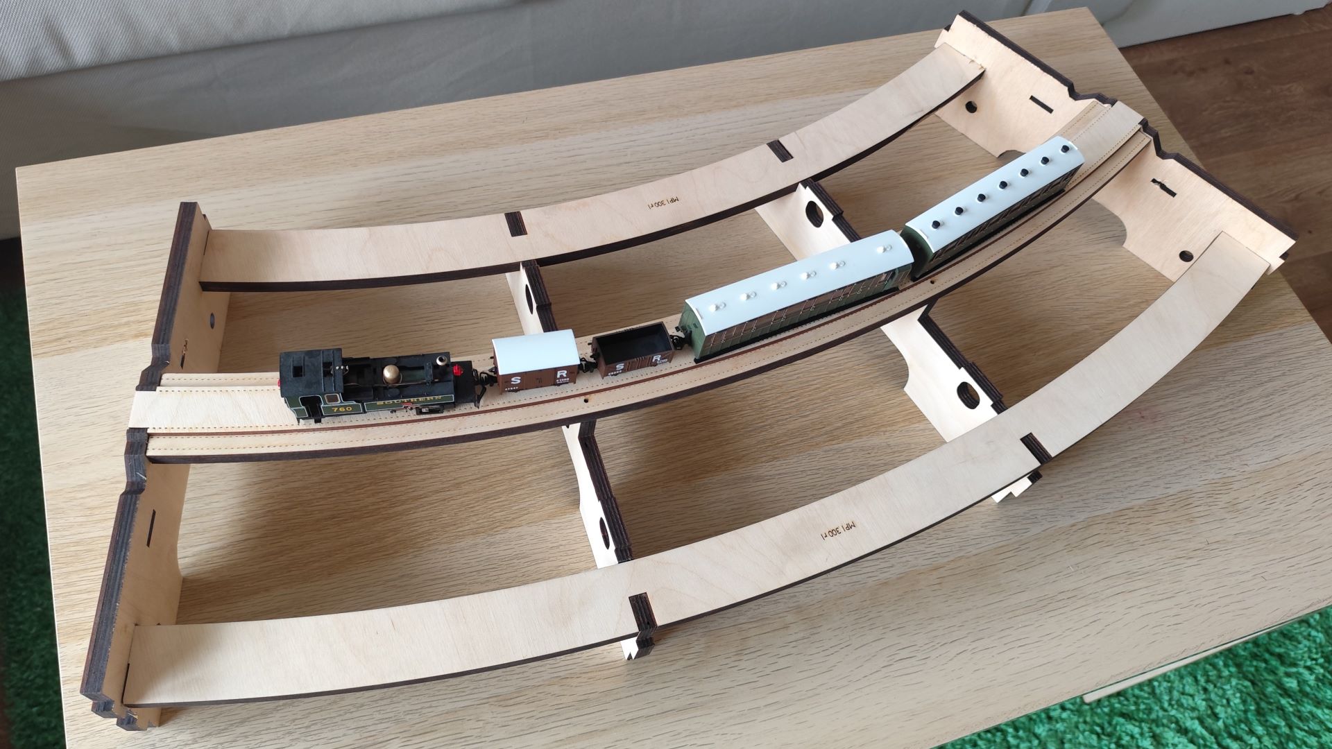 Kolejiště je navržené kruhové koncepce, na stavbu by bylo použito osm modulů o poloměru 1000 milimetrů a šíře 400 milimetrů. Tak to by nám dalo celkovou velikost kolejiště po obvodu 2400 milimetrů a vnitřní prostor pro obsluhu by byl kruh o 1600 milimetrech. Moduly by byli pevně spojeny po dvou, tudíž by kolejiště mělo 4 díly, po devadesáti stupních kruhu. Na každém "segmentu" by byla trať o délce cca 1570 milimetrů. Kolejivo by bylo použito od Peca, výhybky mainline o úhlu odbočení 12 stupňů.