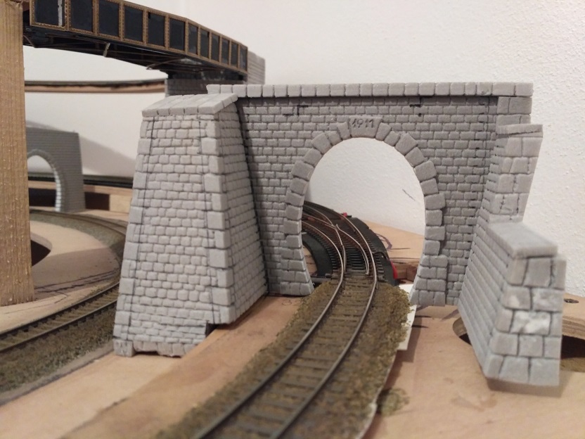 Ahoj, delší dobu jsem tu nebyl, jelikož viditelné práce příliš nepokročily. Přiznám se, že jsem si trochu pohrával s TC a jeho možnostmi, tím jsem zároveň řádně otestoval kolejiště před realizací krajiny. Objednal jsem si nějaký materiál, ale nebyl jsem spokojený, tak jsem se kromě mostních pilířů pustil do výroby vlastních tunelových portálů, opěrných zdí, do úpravy mostních konstrukcí. Teprve pak může následovat tvorba terénu, dlouhé zimní večery se blíží.
