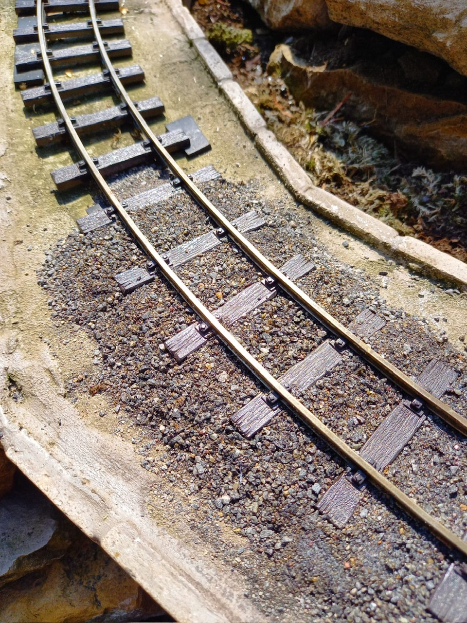 to je rozchod 45mm- znova rezať stovky pražcov a pribíjať tisícky skobičiek sa mi už nechce. Pýtam sa aj preto, či pri prípadnej následnej demontáži koľaji sa nemôžu poškodiť - keď sú takto zalepené. Rád by som zamenil tvoju metódu zaštrkovania za tú "moju" doterajšiu s Rowlandovou zmesou - tvoja vyzerá byť jednoduchšia a trvácejšia.