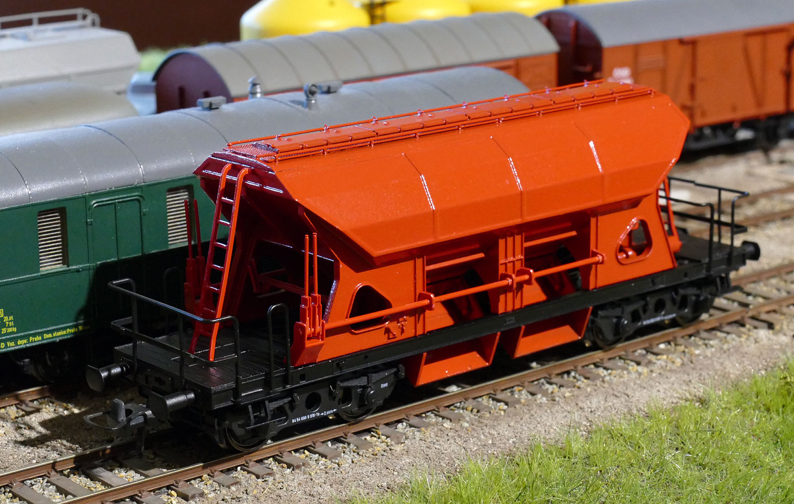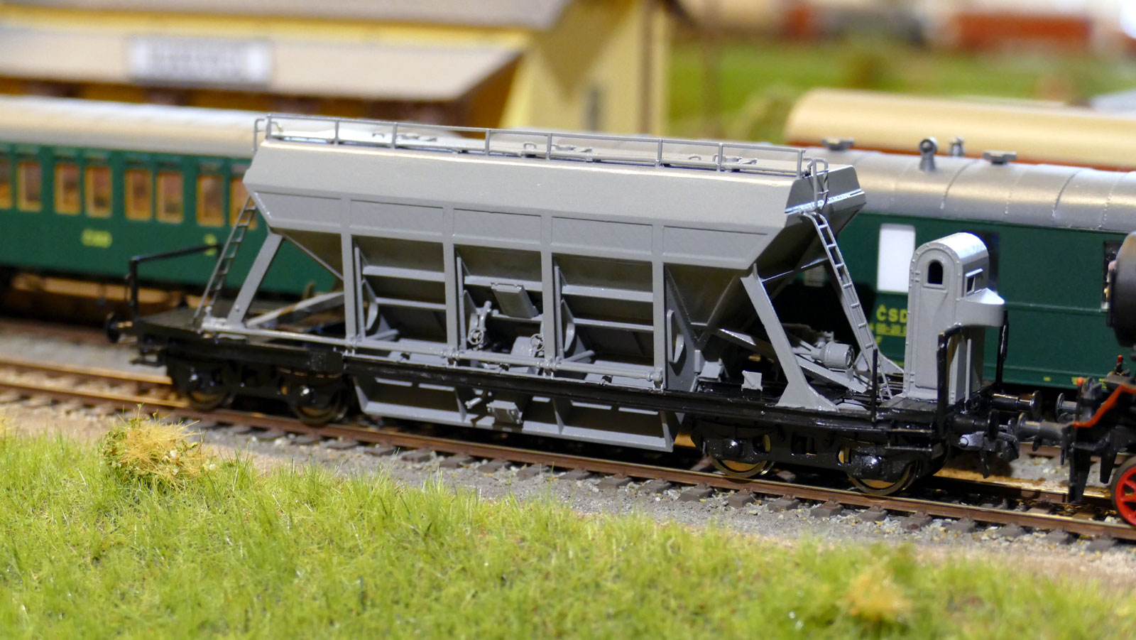 Tak štěteček s černou barvou řádil na rámu vozu, když jsem se teď díval na fotky .... bude nutno opravovat, ale to jinak nejde a na fotkách jsou nejrychleji k nalezení chyby. Je to stříkané RAL 7005 - skříň, ČSN 1100 je malou trošku tmavší. Uvažuji zda výstup na střešní lávku + zábradlí na střeše natřít černě, z výroby asi ano, ale po dílnách ... to je otazník.