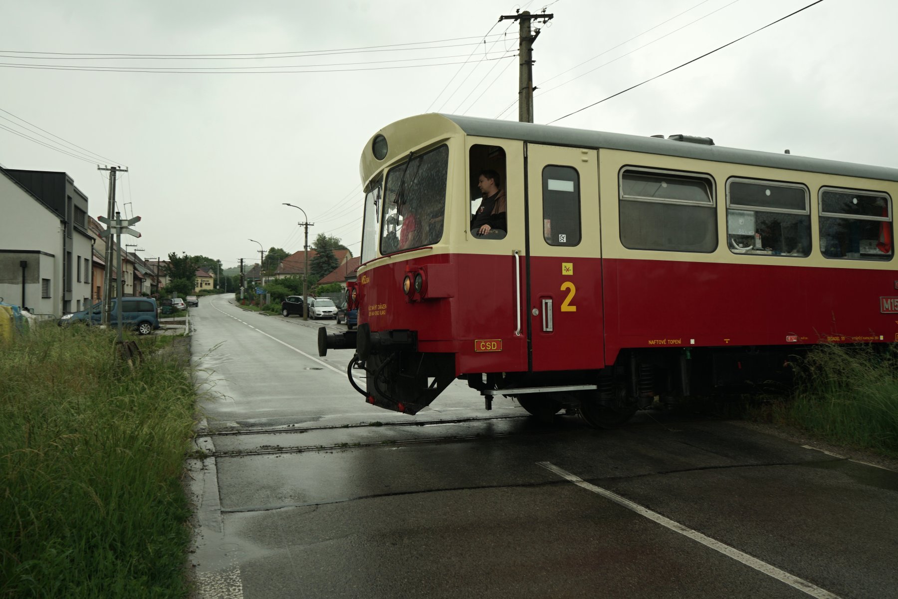Tak máme už trochu zkušenosti s jízdou po kolejích v horším technickém stavu z našeho depa. Ale když už se naskytla možnost se tam dojet podívat a byli jsme už tam, tak proč toho nevyužít přes nepřízeň počasí a docela omezený čas. Když se jede pomaleji a přizpůsobí se rychlost stavu dráhy a rozhledu, tak se to dá, i když občas to je fakt zážitek, ale to vesměs odpovídá inzerovanému... https://zazitkovazeleznice.cz/o-nas