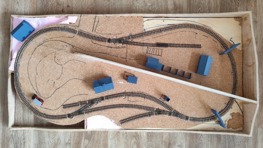 Tak jsem o kousek pokročil, nalepil jsem základní vrstvu korku a položil koleje. Jenom vlečka ještě není finální, musím to ještě nechat uzrát v hlavě.