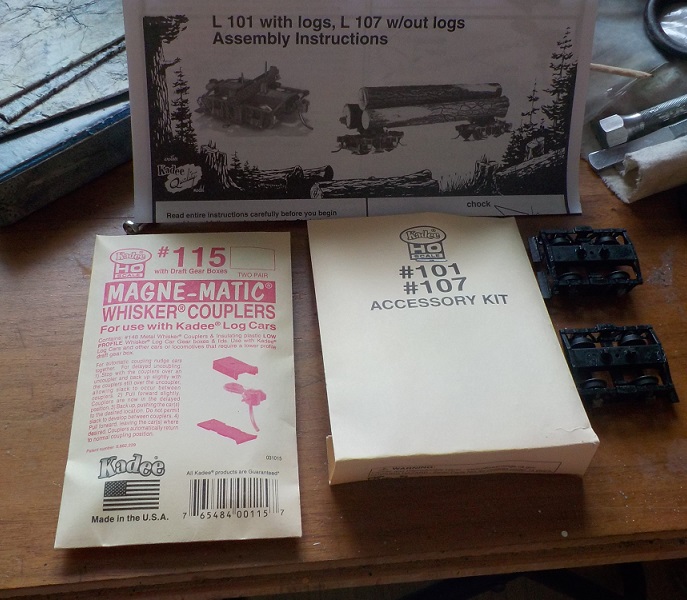 Než došlo ke zrušení eshopu USAmodel, stihl jsem tam nakoupit celkem dost materiálu a mezi ním i americké stavebnice čtyřnápravové zetky a několik dvojic oplenů + dřevorubecký mikroslužebák v H0.