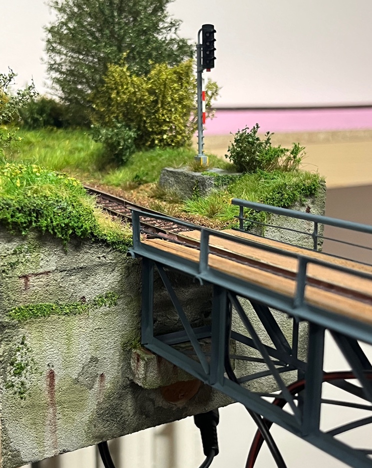 Máš recht, i já bych to chtěl nějak více zamaskovat. No, ale právě zatím nevím jak. Návěstidlo je umístěné jako na betonovém soklu, který je vedle toho zvýšeného náspu, po kterém vede trať. Trochu jsem si říkal, jestli to jen třeba nenabarvit, aby to bylo stejné, jako ten sokl, aby to vypadalo, jako, že to je ten vršek toho litého betonového soklu, ale prostě nevím. Teď to je zatím takto, než se najde nějaké řešení :?