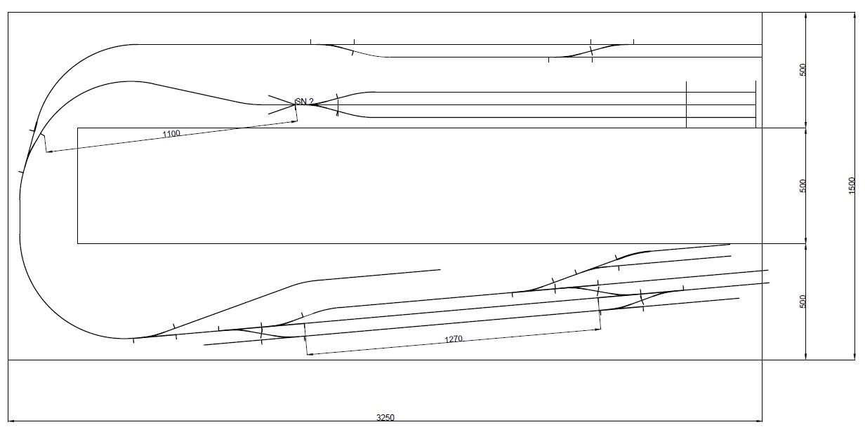 Aha, teď koukám na rozměry. Šířka 130 a tvar do U včetně vjezdu do SN určitě v H0 nedáš. V TT potřebuješ na oblouk do SN 70 cm na šířku, to tu ale někdo psal.